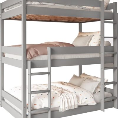 Blisswood Bunk Bed, 3ft Triple Bunk Bed With Ladder High Sleeper Kids Bed, Solid Pine Wood Kids Children Bed frame For Home (Grey, L197 x W96 x H198 cm)