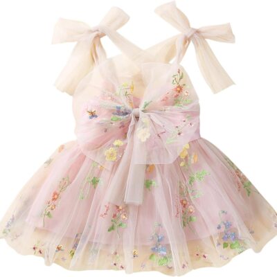 JiAmy Baby Girl Dress Sleeveless Straps Flower Embroidery Dresses Toddler Birthday Party Wedding Princess Tulle Tutu Dress with Bow for Girls 6 Months-4 Years