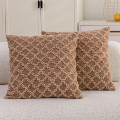 Home Brilliant Set of 2 Super Soft Faux Fur Cushion Covers 45 x 45 Couch Pillow Covers for Bedroom Spring Decor, Light Brown