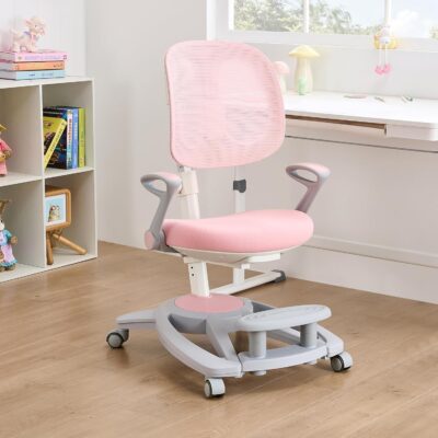 Kids Ergonomic Comfort Chair with Footrest & Height-Adjustable Seat, Multifunctional for Study, Work & Dining – Comfy Cushion & Smooth Wheels for Boys & Girls (Pink)