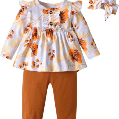 Awxoder Infant Baby Girl Ruffle Floral Print Tops Long Sleeve + Pants 2Pcs Outfit Set