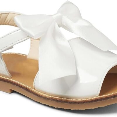 Girls Spanish Bow Sandals Shiny Patent Menorcan Style Baby White Pink Camel Navy Blue