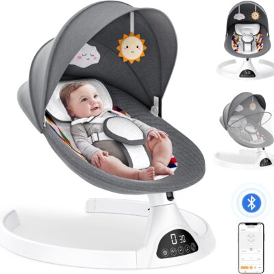 Biebuxo Electric Baby Bouncer Chair,APP Baby Swing Chair Bluetooth Enabled Baby Bouncing Chair with 5 Swing Speed Portable Soothing Baby Chair with Motion & Sounds for Newborn