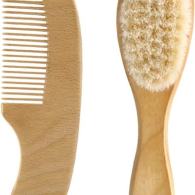 ANDRESLAD Infant Hair Brush Comb Set Natural Wool Wooden Baby Hair Care Newborn Gentle Scalp