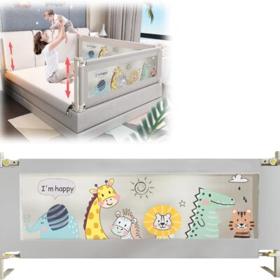 EAQ Toddlers Bed Rails 90cm Bed Guard for Single Bed Multi Gear Adjustable Height Seamless Press Guard rail Kids Great Fit Full-Size Queen & King Mattress (ZOO, 90cm)