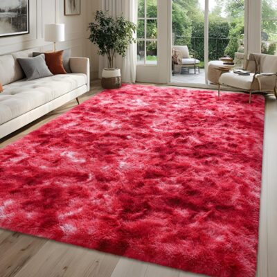 FALARK Fluffy Wine Red Rugs for Bedroom Living Room, 3×5 Feet Area Rug for Boys Kids Girls Bedroom, Soft Shaggy Plush Cute Floor Carpet for Baby Nursery, Non-Slip and Washable Carpets for Home Decor