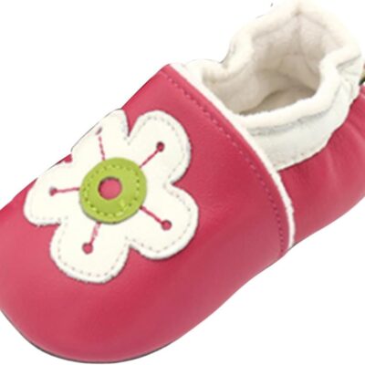 Dotty Fish Leather Infant Casual Shoes. Baby Boys Girls Slip-on Rubber Sole Trainers. First Walkers. Non-Slip Toddler Shoes (3-7 UK Child)