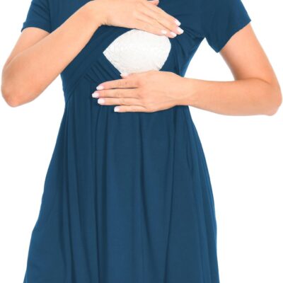 Bearsland Women’s Short Sleeve V-Neck Maternity Nursing Dress for Breastfeeding with Pocket