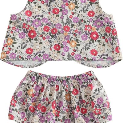 Toddler Baby Girls 2 Piece Outfit Shorts Set Floral Crop Tank Top + Bloomer Shorts Set
