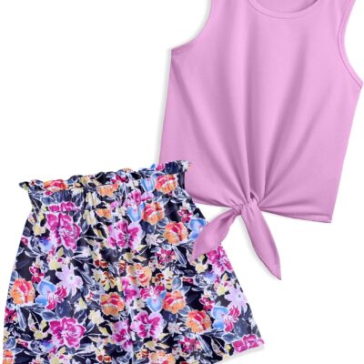 Arshiner Girls Tank Tops with Shorts Set Kids Summer Clothing Sets Casual Fashion Sleeveless T-shirts Outfits for Girls