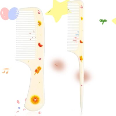 Toddler Comb Set, Small Cute Fine Tooth Comb & Rat Tail Comb for Kids Styling, Yellow Mini Hair Comb Plastic Parting Combs, Anti-Static Hairdressing Comb for Baby Girl Wet Dry Hair (2Pcs)