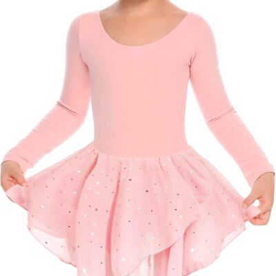 TUONROAD Girls Ballet Dress Kids Long Sleeve Cross Straps Ballet Outfit Gymnastics Leotard Costume Dancewear with Skirt 3-10 Years