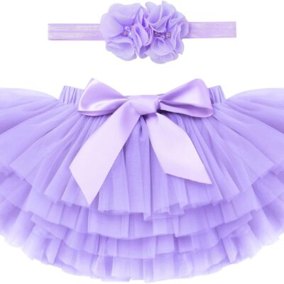 Baby Girls Tutu Skirt Fluffy Ruffle Tulle Layered Skort Nappy Diaper Cover Bloomers Shorts PP Pants with Flower Headband Newborn Infant Photography Photo Shoot Birthday Outfits