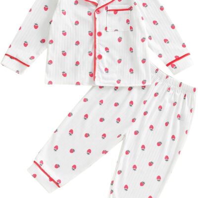 WERNZATT Kids Baby Boy Girl 2-Piece Pajama Set Toddler Long Sleeve Button Down Top Pants Satin Loungewear Sleepwear Nightwear