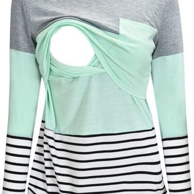 Jumpers for Women UK Long Sleeve Breastfeeding T-Shirt Round Neck Stripe Patchwork Pregnant Nursing Blouse Breast Feeding Pregnant Tops T-Shirt Pregnancy Clothes
