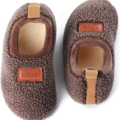Dream Bridge Kids Sherpa Fleece Slippers with Anti-Slip Sole for Boys Girls