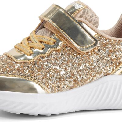 LUCKY STEP Kid’s Glitter Fashion Sneakers Sparkly Princess Tennis Bling Shiny Sequins Athletic Walking School Shoes for Children/Boys/Girls