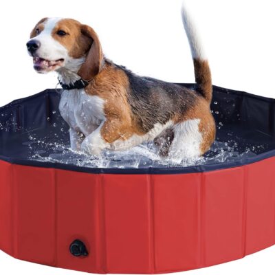 PawHut Foldable Dog Paddling Pool Pet Cat Swimming Pool Indoor/Outdoor Collapsible Summer Bathing Tub Shower Tub Puppy Washer (Φ100 x 30H cm, Red),D01-012RD