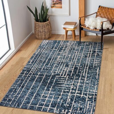 TUKDAK Blue Rugs Living Room 120x180cm, Modern Abstract Washable Non Slip Area Rugs for Bedroom, Boho Soft Short Pile Large Floor Carpet for Dining Room Office Nursery Bedside