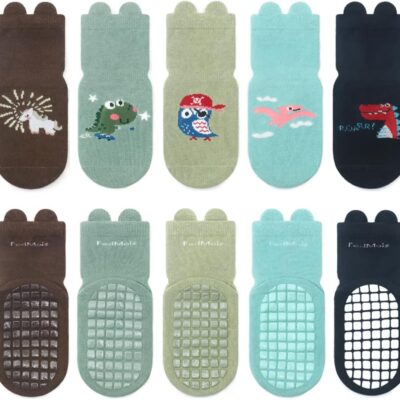 FedMois 5 Pairs Baby Kids Anti-slip Socks Cotton non skid Ankle Socks Animals