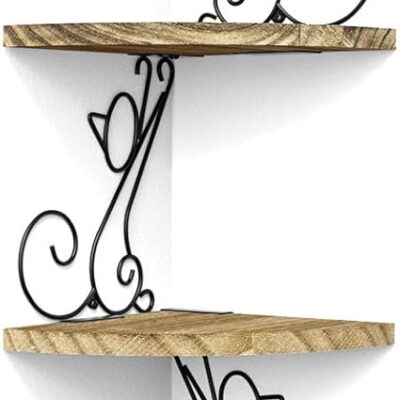 Alsonerbay Corner Shelf Wall Mount of 4 Tier Rustic Wood Floating Shelf Cat Shape Metal Stand for Bedroom Living Room Bathroom Kitchen Office and More Carbonized Black