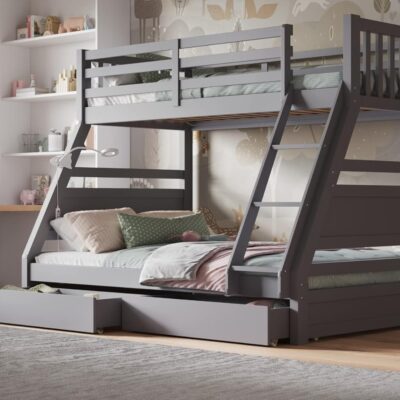 Flair Furnishings Triple Bunk Beds for Kids, Bunk Bed with Storage, Heavy Duty and Sturdy, Cosy, Stylish, Space-Saving Design (Grey)