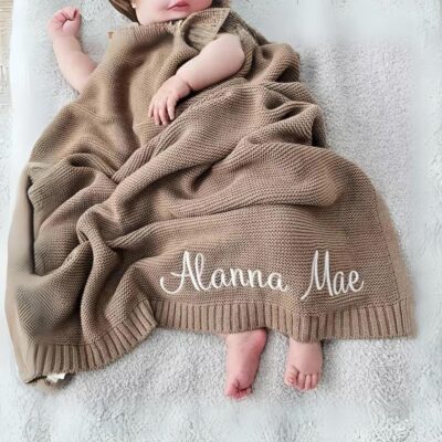 HDLOVE 100x80cm Personalised Baby Blankets, Cotton Knitted Blanket Personalized Embroidered Name Baby Boy Baby Girl Soft Blanket Baby Shower Breathable Stroller Blanket(Camel,Embroidery name)