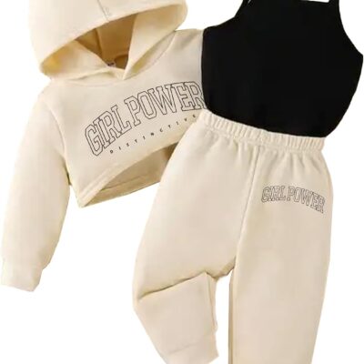 Xumplo Toddler Baby Girls Clothes Set Children Long Sleeve Letter Print Hoodie+Tank Top+Pants 3 Piece Outfits