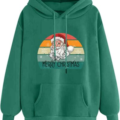 Merry Christmas Hoodies for Women UK Long Sleeve Crewneck Sweatshirt Blouse Cute Xmas Tree Reindeer Printed Tops Holiday Clothes Festival Outfits Athletic Wear Activewear