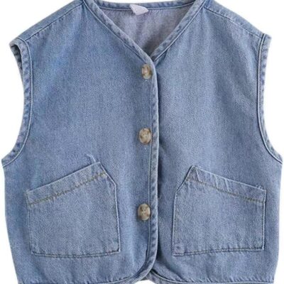 ACMEDE Girls Denim Vest Coat Spring Autumn Kids Girls Waistcoat Sleeveless Jacket Baby Girls Gilet Denim Baby Boys Outerwear Cowboy Tops Little Girls Boys Casual Denim Gilet