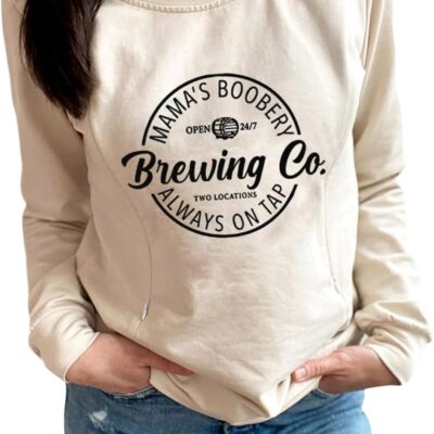 HZMM Women’s Maternity Jumper Tops Side Zip Open Pregnancy Sweatshirt Comfort Autumn Warm Breastfeeding Nursing Pullover Top Mama’s Boobery Always On Tap Tunic Tops