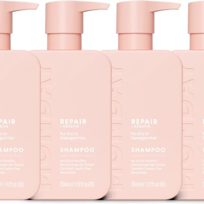 MONDAY Haircare REPAIR Shampoo with Keratin, Argan Oil & Cocoa Butter 4×354mL For Dry to Damaged & Depleted Hair 4×354mL