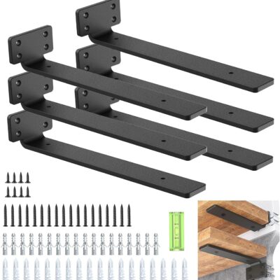 WELDUN 6 Pack Floating Shelf Brackets 12 Inch, Heavy Duty Metal L Brackets for Shelves Support Wall Hanging