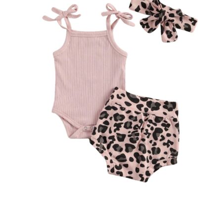 Baby Girl Leopard Print Outfits Tank Top Onesies Ribbed Halter Romper Bodysuit Shorts Bloomers Summer Clothes Set – – 12-18 Months