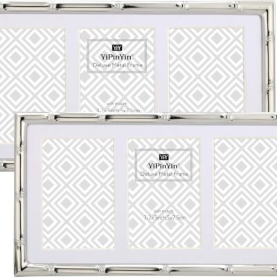 3-2×3” Silver Multi Metal Picture Frames 2pack, Elegant Bamboo Designs Silver Plated Photo Frames 3-2×3” Baby frames With Soft Touch Velvet Backing for Desktop and Wall Décor