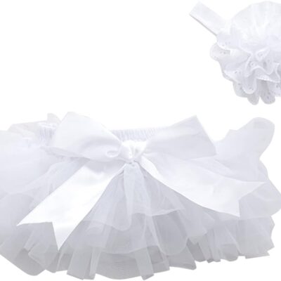 De feuilles Toddler Baby Girls Tutu Skirt with Diaper Cover Tulle Layered Bloomers and Headband Set