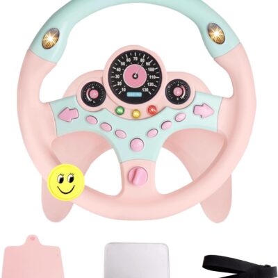 Kids Steering Wheel Toy for Car, Driving Simulated Toy for Kids with Light and Music, Electric Early Learning Educational Baby Steering Wheel Toy for Boys and Girls(Pink)