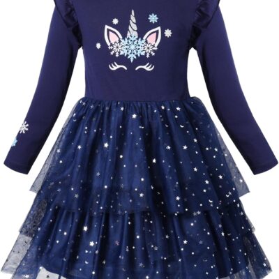 VASCHY Party Dress for Girls, Cute Tulle Dress Ruffle Sleeve Birthday Holiday Outfit Clothes for 3-9Years Toddler/Little/Big Kid