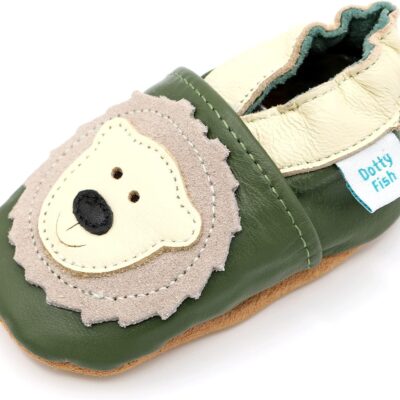 Dotty Fish Soft Leather Baby and Toddler Barefoot Shoes for Boys and Girls. Non-Slip Suede Soles. Animal Designs. 0-6 Months – 4-5 Years