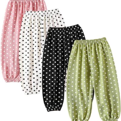 ACMEDE Little Girls’ Trouser, Pack of 4 Toddlers Girls Breathable Pull-On Trousers Soft and Comfortable Infant Baby Toddler Girl Boy Bloomers Polka Dot Pants Harem Trousers