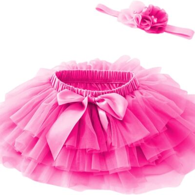 Beganly Baby Girls Soft Fluffy Ruffles Tulle Skirt with Diaper Cover Toddler Princesses Party Tutu Sets with Flower Headband