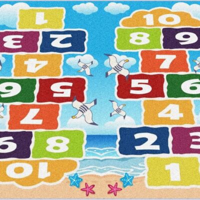 Playroom Rug for Kids Sky Ocean Beach Hopscotch Game Rugs, Area Rugs for Boys Girls Toddlers Bedroom Decorative Play Mat for Babies 1-6 Years (Sky Ocean Beach Hopscotch, Double Fun 120 x 180 CM)