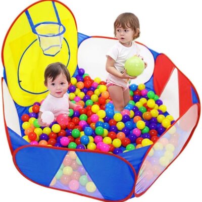 Eocolz Kids Ball Pit Large Pop Up Childrens Ball Pits Tent for Toddlers Playhouse Baby Crawl Playpen with Basketball Hoop and Zipper Storage Bag, 4 Ft/120CM, Balls Not Included (Blue)