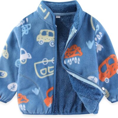 Toddler Kids Polar Fleece Jacket, Thickened Full-Zip Long Sleeve Warm Coats Outwear for Baby Boys Girls Autumn Spring Winter