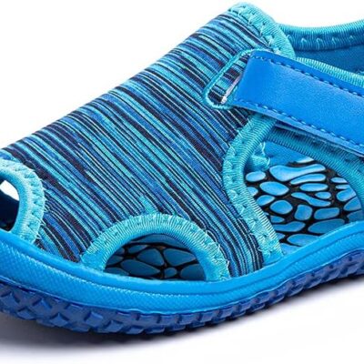 Hitmars Boys Sandals Open Toe Girls Sandals Sports Summer Kids Trekking Shoes Breathable Beach Pool Camouflage Knit Blue Pink Purple Size 4-12 UK Child