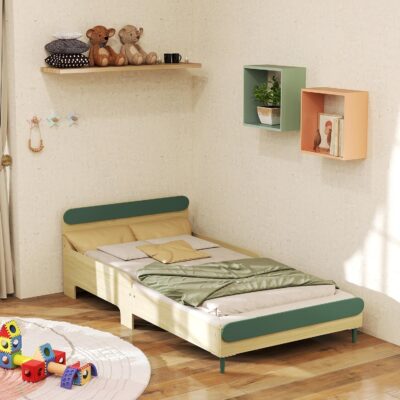 AIYAPLAY Toddler Bed, Kids Bed Frame with Safety Rail, for Ages 3-10 Years, Kids Bedroom Furniture, 195 x 103 x 60.5cm, Green