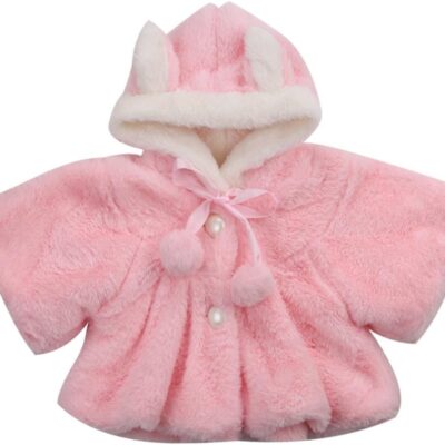 FeMereina Baby Girl Faux Fur Coat Pearl Button Bow Cute Bunny Ear Hooded Outwear Thick and Warm Jacket
