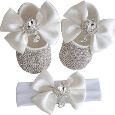 Uposao Baby Girl Shoes with Headband Gift Soft Sole Non-Slip Sneakers Princess Shoes for Birthday Baptism Ceremony Kids Girls 6-12 Months