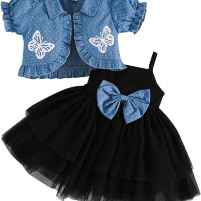XIXIMAON Baby Girl Summer Outfits Bow Sleeveless Tulle Skirt Dot Butterfly Floral Puffy Short Sleeve Coat Dress And Cardigan Set Kids Spring Clothes