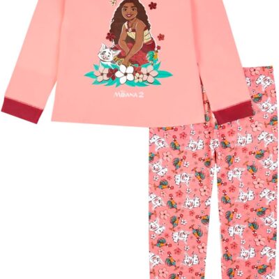 Disney Moana Girls Pyjamas | Girls Long Pyjamas PJ Set | Moana Pjs | Nightwear Sleepwear Gifts for Girls Ages 2 to 12 Years Old